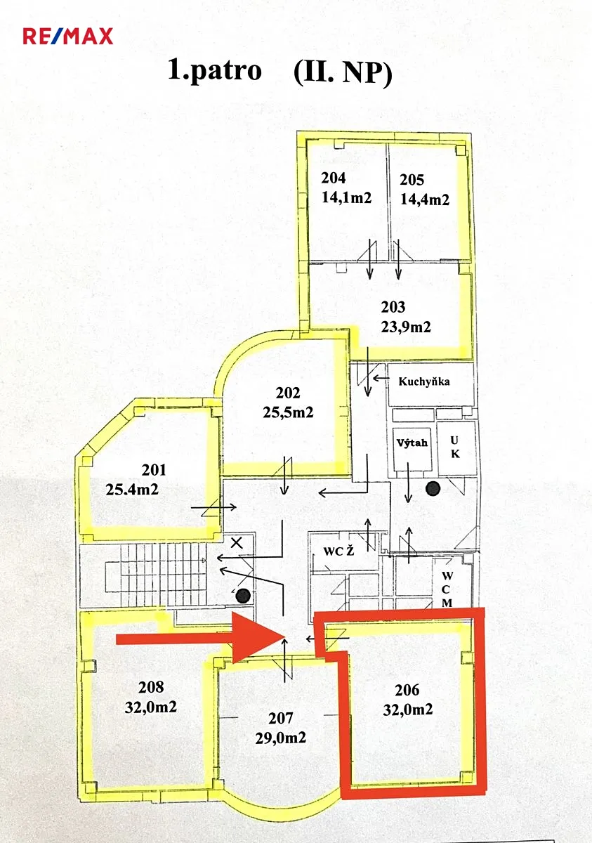 Na patře je k dispozici další kanceláře. V domě je výtah.