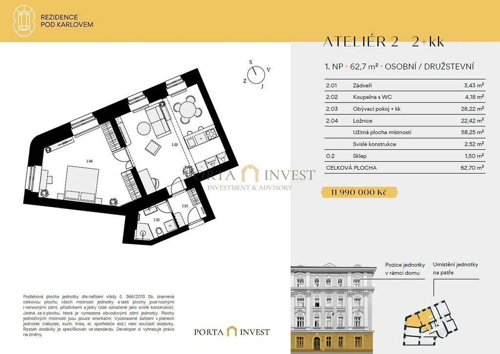 Hledáte výjimečné bydlení, které spojuje prestižní adresu, velkorysý prostor a dech beroucí výhledy? Objevte unikátní ateliér 2+kk o rozloze 61,2 m² v exkluzivní Rezidenci Pod Karlovem.