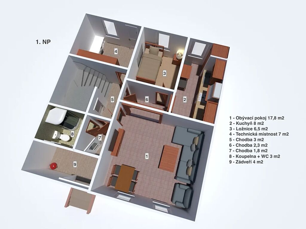- Zastavěná plocha: 72 m²