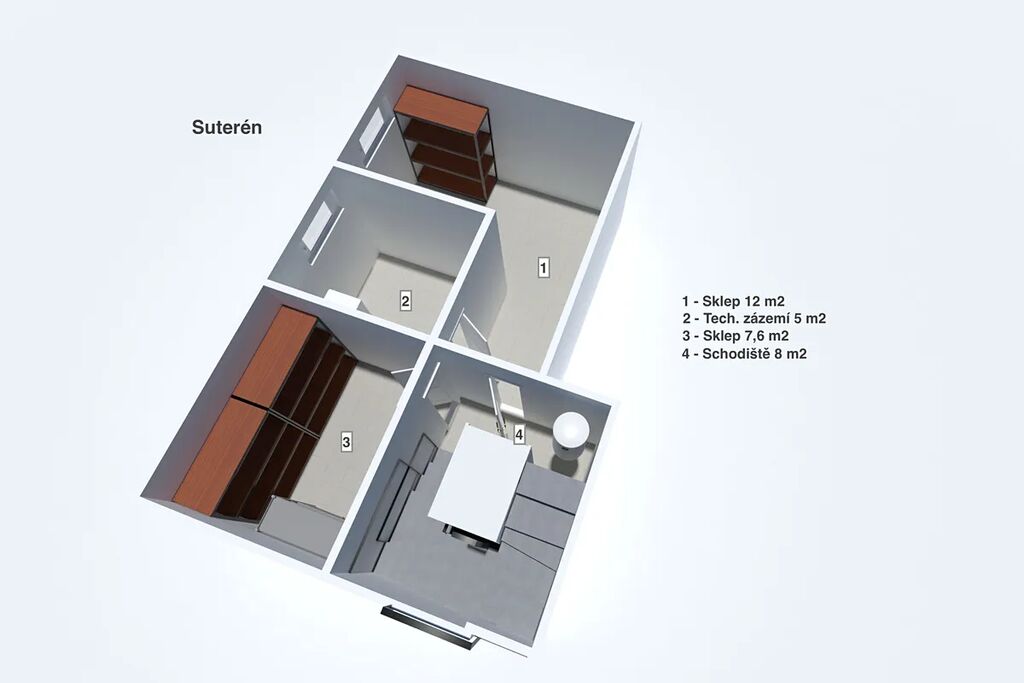 Dům je kompletně podsklepen. Tyto prostory jsou čisté, vymalované a prostorné.