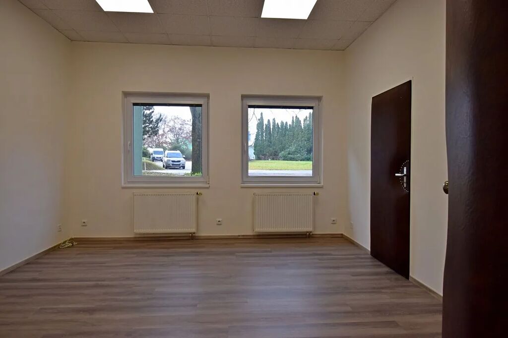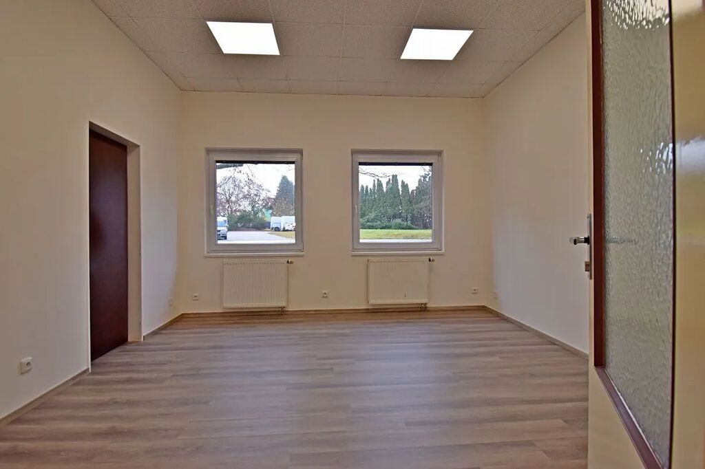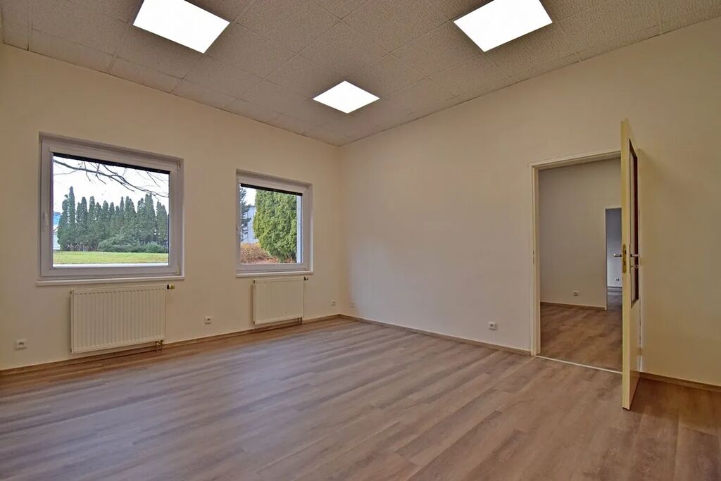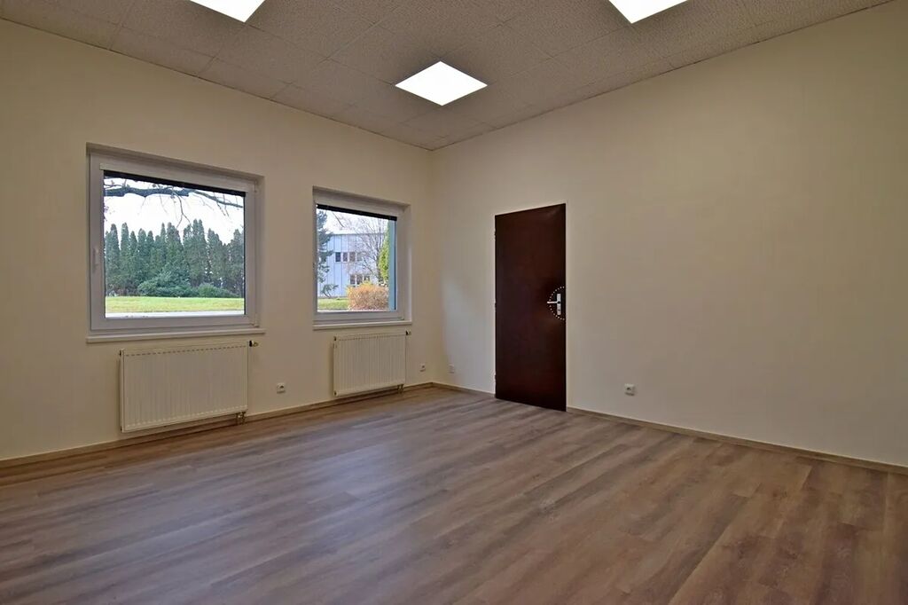 Nabízíme nebytové prostory 143 m² v přízemí jednopatrové budovy v uzavřeném areálu s ostrahou 24/7. Prostory se skládají z 5 kanceláří o velikosti od 18 m2 do 25 m2, do kterých se vchází z centrální chodby, na niž navazuje malá kuchyňka s koupelnou. Všechny kancelářské místnosti mají samostatné vstupy z prostorné chodby a současně jsou vzájemně propojeny. Součástí pronájmu jsou rovněž dámská a pánská toaleta. Parkování je možné pronajmout před domem. Cena za 1 parkovací místa činí 500 Kč/měs. Volné ihned.