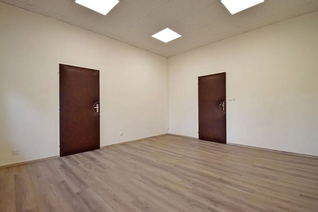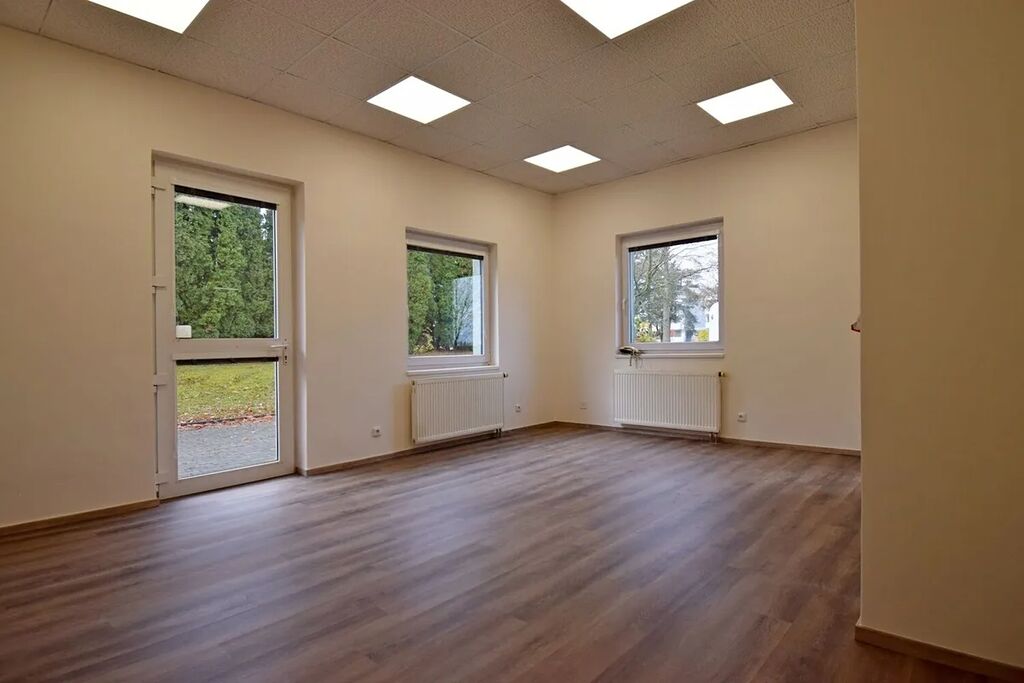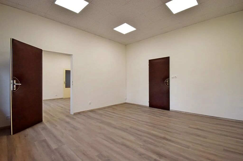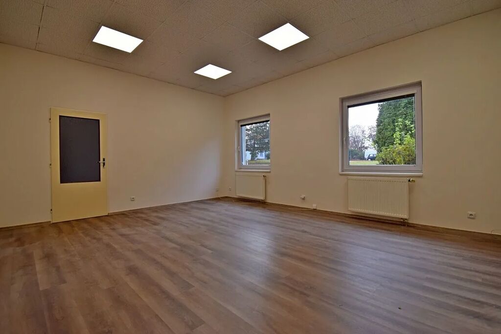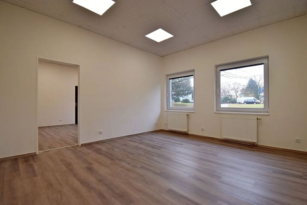 Nabízíme nebytové prostory 143 m² v přízemí jednopatrové budovy v uzavřeném areálu s ostrahou 24/7. Prostory se skládají z 5 kanceláří o velikosti od 18 m2 do 25 m2, do kterých se vchází z centrální chodby, na niž navazuje malá kuchyňka s koupelnou. Všechny kancelářské místnosti mají samostatné vstupy z prostorné chodby a současně jsou vzájemně propojeny. Součástí pronájmu jsou rovněž dámská a pánská toaleta. Parkování je možné pronajmout před domem. Cena za 1 parkovací místa činí 500 Kč/měs. Volné ihned.