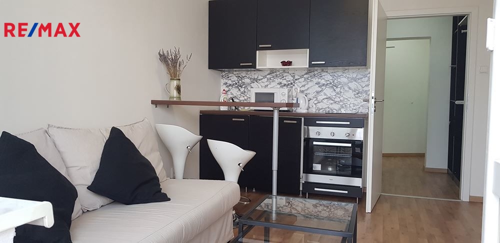 Pronájem bytu v ulici Hornoměcholupská s dispozicí 1kk na ploše 21,6 m2, který se skládá z jednoho pokoje s kuchyňským koutem, koupelny s WC, předsíně, sklepní kóje a balkonu. Byt je základně zařízen (vestavěné skříně, rozkládací gauč, komoda, jídelní pult a dvě židle, konf. stolek, kuchyňská linka s ledničkou, varnou deskou). Nájemce bytu může využívat také zdarma dobře vybavené fitness v suterénu domu, velkou terasu vhodnou na opalování se sprchou. V domě je také prádelna se sušičkou. Byt je umístěn ve 4.NP s výtahem. Dům je zabezpečen ostrahou.