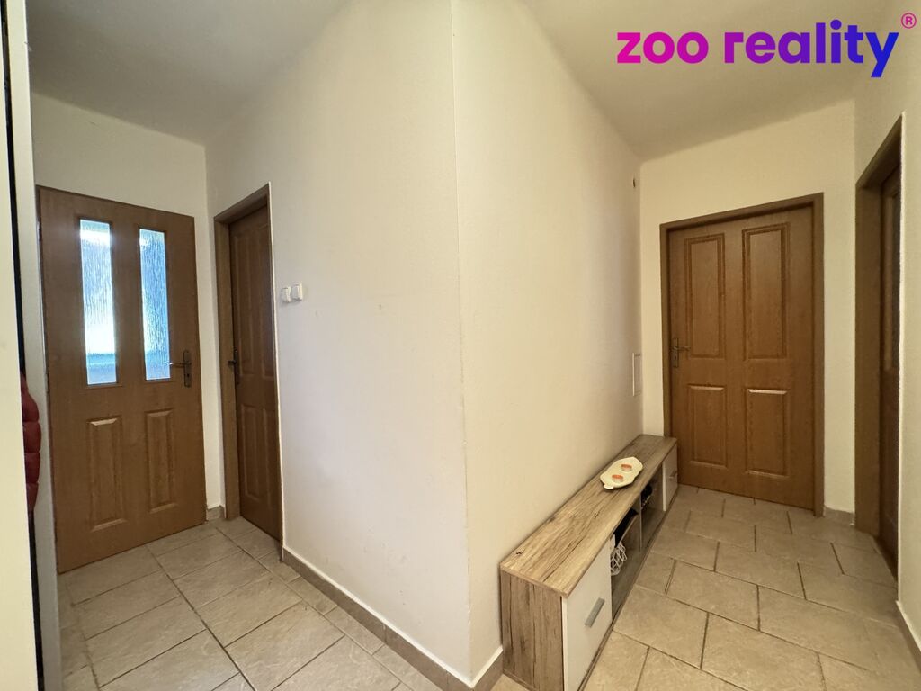 Najdeme zde vstupní předsíň do tvaru L, kuchyni s prostorem pro jídelní stůl, dva samostatné pokoje, koupelnu s vanou, umyvadlem a toaletou a komoru. K bytu náleží sklep.