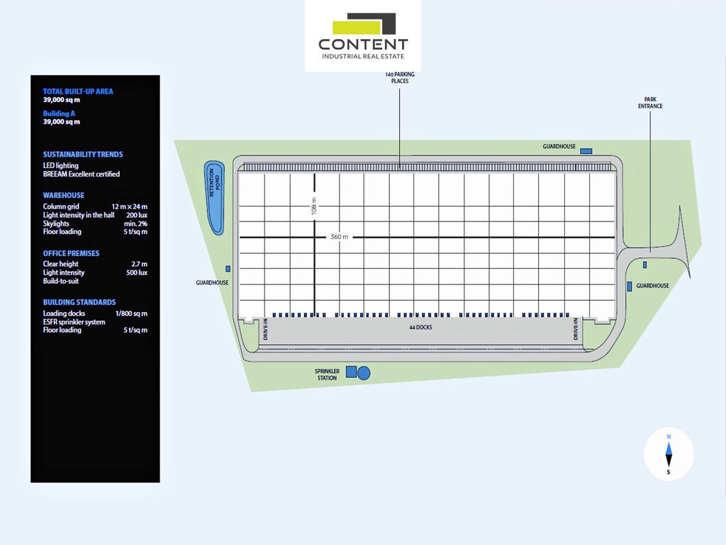 V zastoupení majitele a bez provize nabízíme novostavbu skladu nebo výrobních prostor, umístěných v moderním komerčním areálu v blízkosti dálnice D5. K dispozici bude samostatná industriální hala s výměrou 39500 m²: