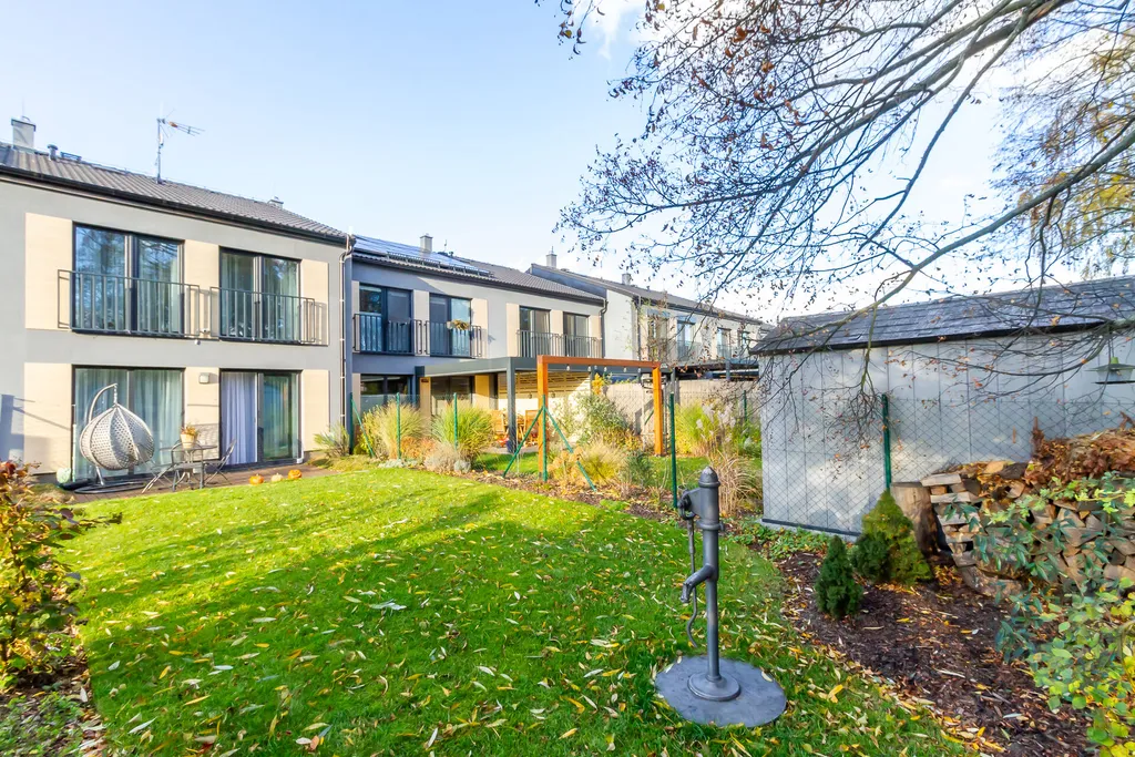 Nabízíme ke koupi moderní cihlový řadový rodinný dům o dispozici 5+kk a celkové obytné ploše cca 125 m², zkolaudovaný v roce 2020. Jedná se o dům situovaný uprostřed řadové zástavby, což nejen zajišťuje velmi příjemné vnitřní klima v létě i v zimě, ale zároveň výrazně snižuje celkové provozní náklady na bydlení. Již na první pohled je patrné, že dům byl stavěn s důrazem na kvalitu, účelnost a komfort rodinného života. Součástí nemovitosti jsou také dvě parkovací stání přímo před domem.