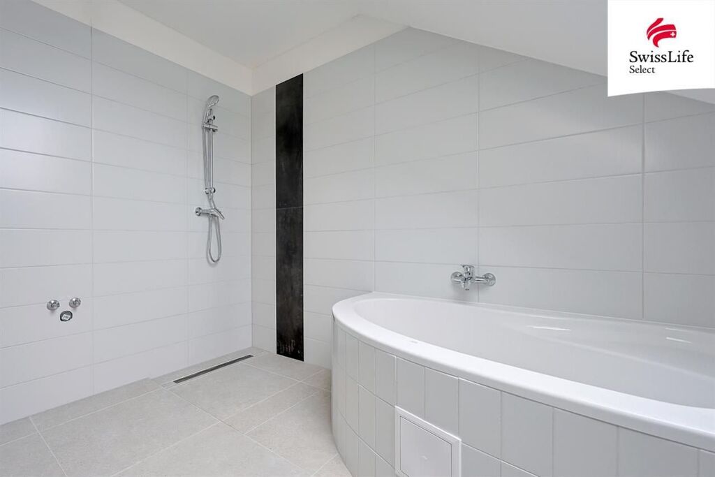 Byt je příjemně světlý, vytápěný tepelným čerpadlem přes vzduchové rozvody ze stropu, proto jsou zde stěny bez rušivých radiátorů.