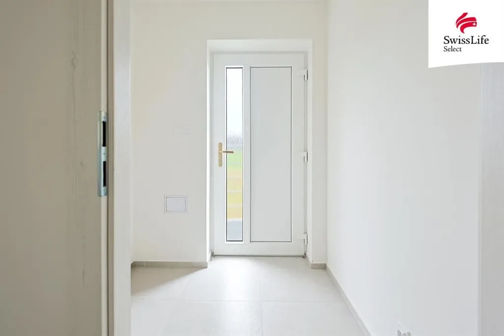 Do bytu vcházíte samostatným vchodem ze schodiště ve štítu domu. Schodiště vede ze zahrady, která je svou velikostí 162m2 tak akorát, aby Vám nezabrala příliš času na péči a zároveň poskytla dostatek místa například pro bazén či herní prvky pro děti. Zahrada je slunná, orientovaná na jihozápad. Kdo rád zahrádkaří, svůj prostor i vyžití zde rozhodně najde. Na zahradě se také nachází společná studna.