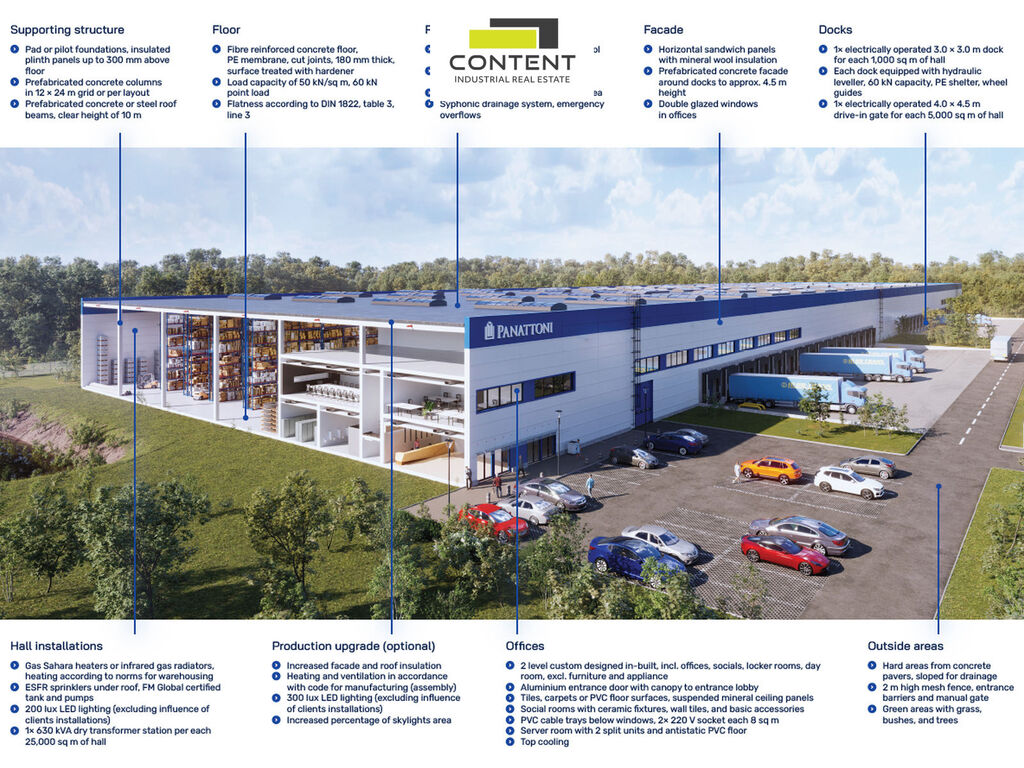 V zastoupení majitele a bez provize nabízíme novostavbu velice kvalitních industriálních prostor, vhodných pro sklad nebo výrobu, umístěných v nově vznikajícím komerčním parku, nedaleko dálnice D35.
