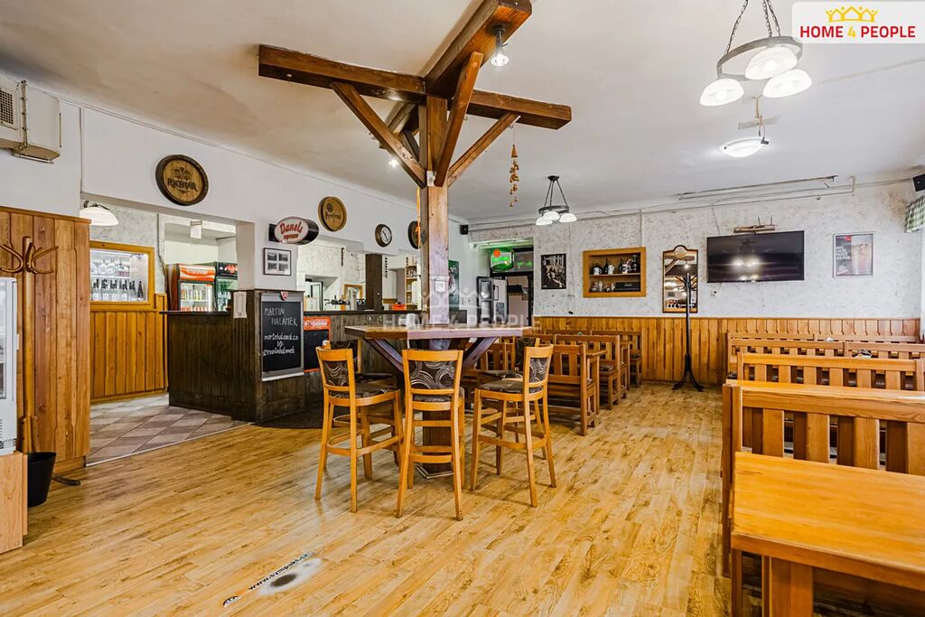Přízemí tvoří kompletně vybavená restaurace s kapacitou 100 míst. Dalších 30 míst je na zastřešené zahrádce. Součástí je výčep, sociální zázemí a navazující gastro kuchyně. Kuchyně je připravená k provozu, přehledná, účelně řešená a vybavená vším potřebným. Zázemí doplňuje sklad, technická místnost, garáž s vjezdem ze dvora, která je průchozí do přízemí domu a parkoviště pro 18 vozidel.