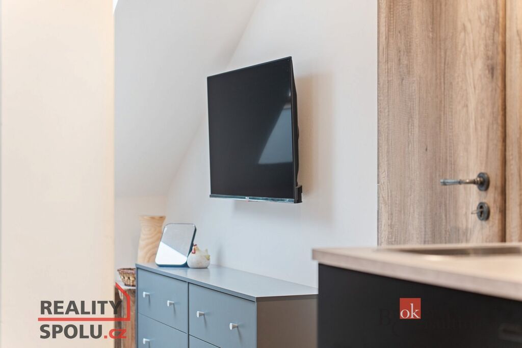 Byt je téměř nový, není potřeba žádné dodatečné rekonstrukce. Součástí prodeje je kuchyňská linka s varnou deskou a ledničkou. Kompletní zařízení, viditelné na fotografiích, je možné ponechat po individuální domluvě.