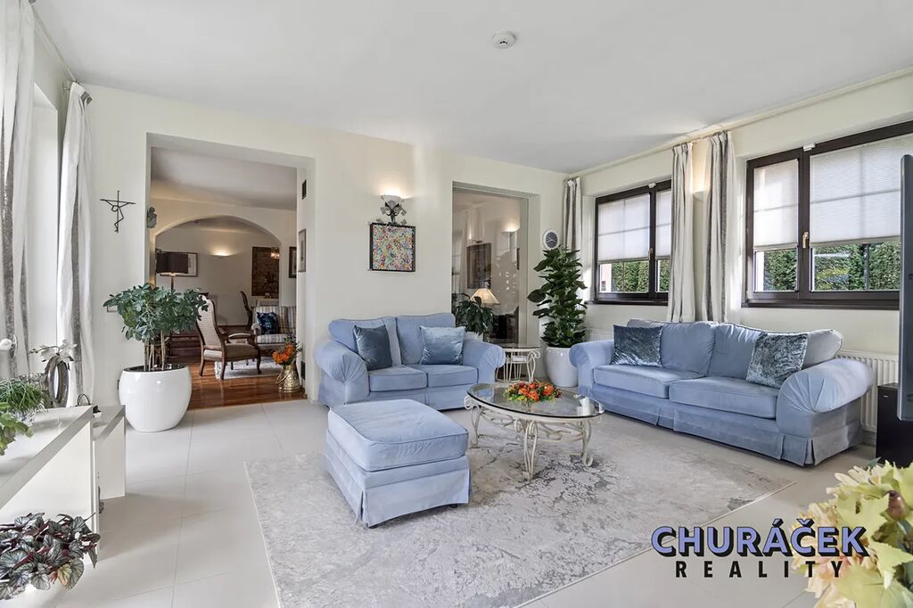 Ve výhradním zastoupení majitele Vám nabízíme ke koupi výjimečný rodinný dům s podlahovou plochou 446 m², nacházející se v klidné obci Ohrobec, pouhých 20 minut od pražského Chodova.