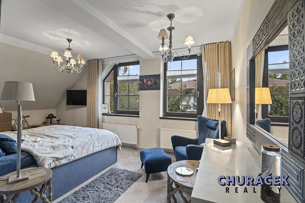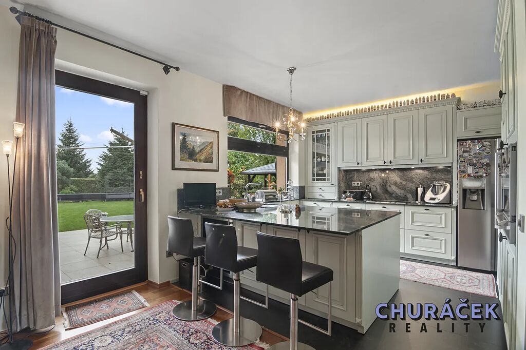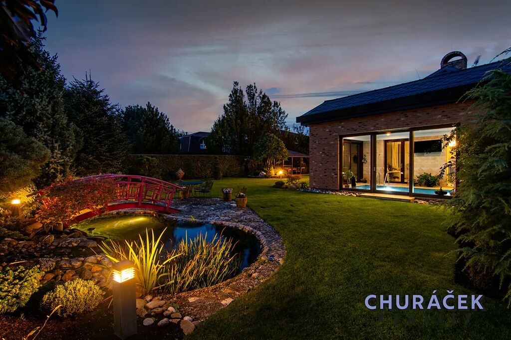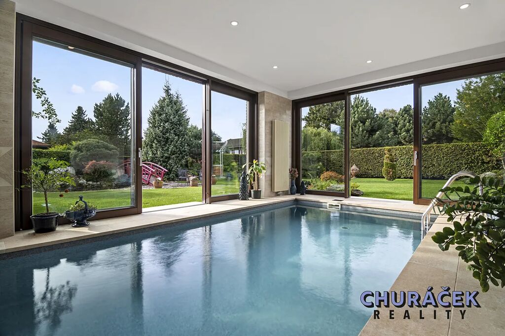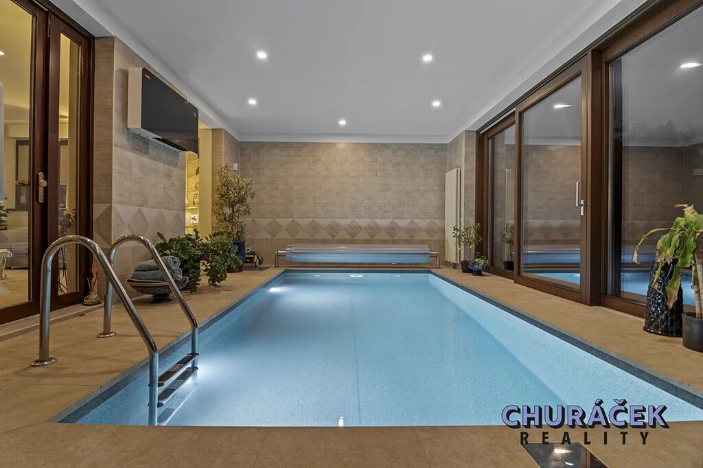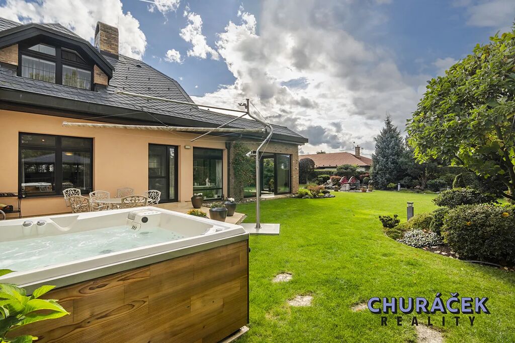 Tento prostorný dům nabízí luxusní a pohodlné bydlení s velkým obývacím pokojem, který je přímo propojený s vnitřním bazénem. Dále zde najdete saunu, venkovní vířivku a pergolu s grilem, ideální pro chvíle relaxace a setkávání s přáteli. K domu náleží také zastřešené parkování a udržovaná zahrada o rozloze téměř 1000 m², která poskytuje dostatek soukromí a prostoru pro rodinné aktivity.