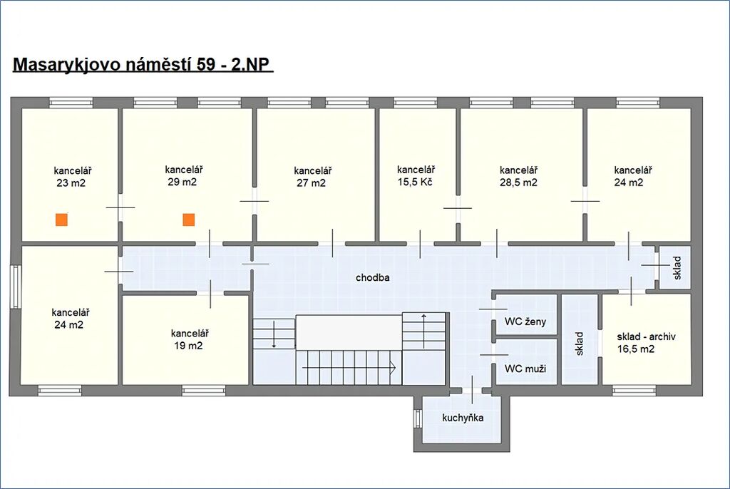 Nabízíme k pronájmu nově zrekonstruované kancelářské prostory nacházející se ve 2. patře budovy.