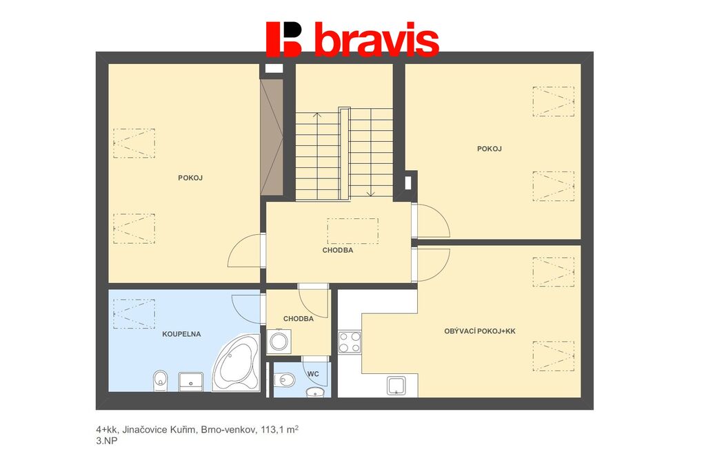 Nabízíme k prodeji prostorný a útulný mezonetový byt 4+kk o celkové ploše 113 m², který se nachází v klidné a vyhledávané lokalitě Jinačovice u Brna.