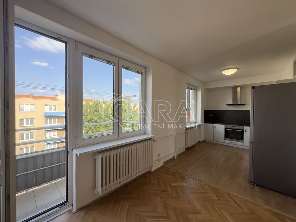Hlavním prostorem bytu je světlý obývací pokoj s moderní kuchyňskou linkou, orientovaný do tichého vnitrobloku. Ložnice směřuje do ulice, ale díky výšce podlaží je zde klidné prostředí.