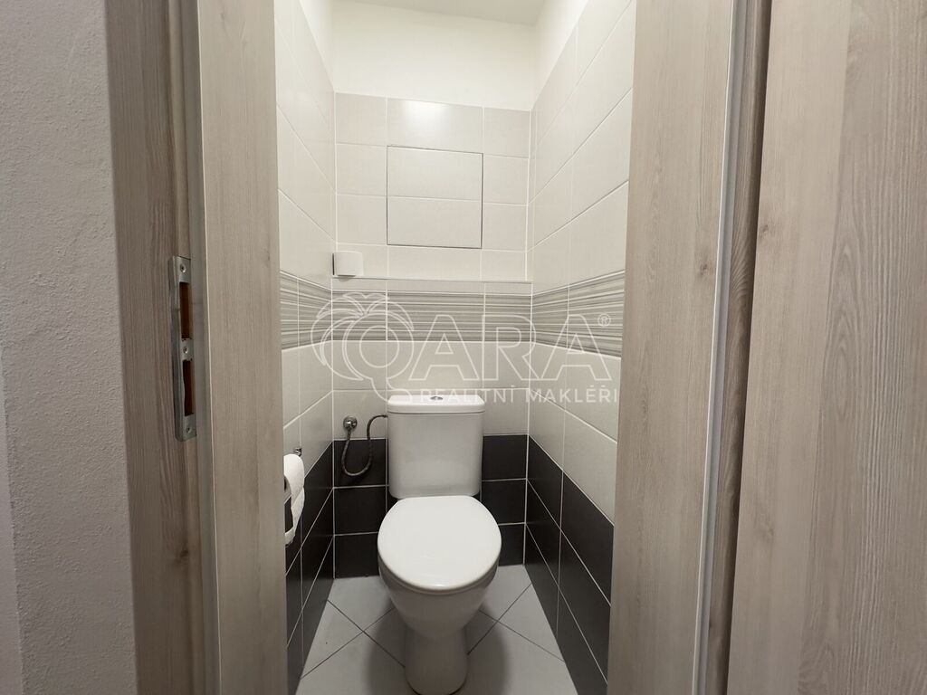 V koupelně je sprchový kout a pračka, toaleta je samostatná. Na chodbě se nachází velkorysé vestavěné úložné prostory, které oceníte v každodenním provozu.