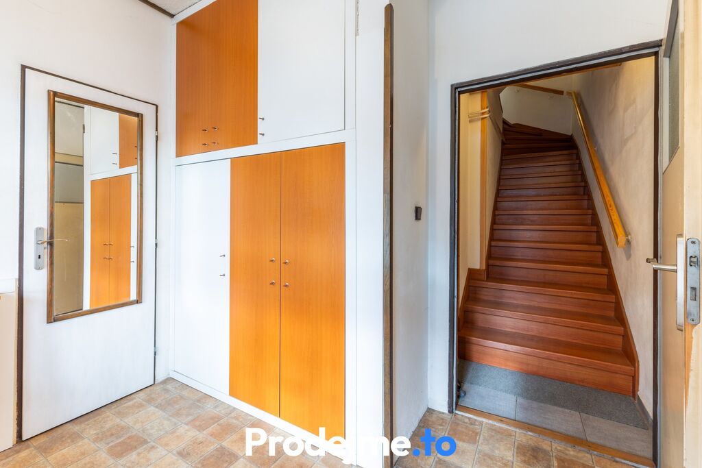 Součástí patra je také menší kuchyně s navazující komorou. Tato část domu vznikla jako přístavba, což otevírá skvělou možnost změny jejího využití — může zde být pracovna nebo praktický úložný prostor navíc. V patře se nachází i samostatná toaleta. Z této úrovně je rovněž přístup na zadní část pozemku.