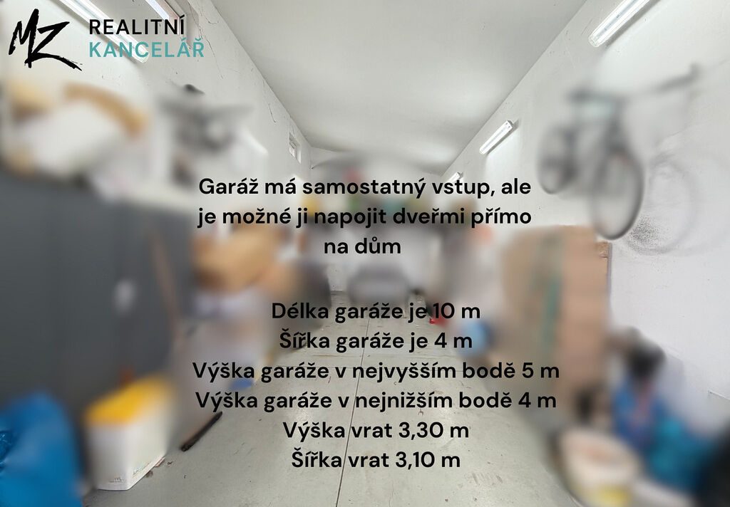 • Velká garáž 55 m², výška až 5 m, průjezd 330 cm výška / 310 cm šířka.