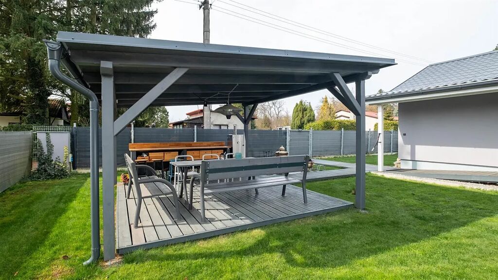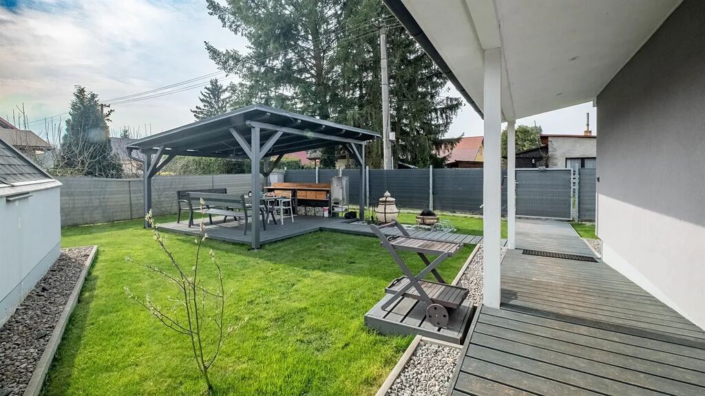 Rekreační objekt, který zde máme na prodej, má dispozici 4+KK s velkou terasou a je postavený na pozemku o celkové ploše 792 m2. Dům je prakticky nový, takže je ihned obyvatelný bez investic a samozřejmě energeticky nenáročný. Celková vnitřní plocha je 79 m2 + máyská pyramida o ploše 23m2. Centrální místností je obývací pokoj, který je přímo propojen s kuchyňským koutem, kde máte plnohodnotně vybavenou a prostornou kuchyňskou linku. Dále zde máte tři ložnice, které jsou vybaveny nábytkem na míru tak, aby byly efektivně využity a poskytovaly dostatek úložného prostoru pro oblečení a další potřebné. Koupelny jsou tu dokonce dvě obě se sprchou, umyvadlem i WC. Saunu je možno využít jako Finskou i jako Ruskou. Objekt byl doposud využíván pro psychoterapeutské víkendy se zaměřením na odpočinek, relax a pohodu. Jistě oceníte také dřevěnou pergolu, s venkovní kuchyní, kde můžete pohodlně grilovat či udit. Dostatek vody je řešen dvěma vlastními studnami, voda má díky úpravně vody kvalitu kojenecké vody. O tepelnou pohodu se stará podlahové elektrické vytápění infratopnou fólií, které je navíc ovládané přes aplikaci v mobilním telefonu, takže si jednotlivé místnosti lze zcela regulovat a ovládat odkudkoliv, stejně jako elektronické zabezpečení domu. Topení je doplněno kamny na dřevo, které nejen že vytopí celý objekt, ale dodají také pocitovou pohodu. Kanalizace je řešena jímkou. Na pozemku máte ještě dřevěnou skladovací místnost a sklad dřeva.