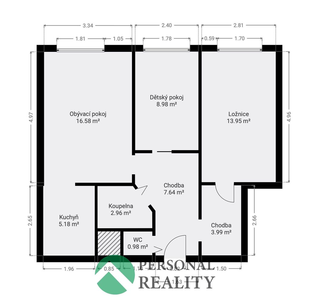 Dispozice bytu: ložnice, dětský pokoj, prostorný obývací pokoj a kuchyňský kout, koupelna s vanou, WC. K bytu náleží sklepní kóje. Je možné využít i společný zasklený balkón. Okna jsou situována na západ. V létě je tu příjemně, a v zimě se drží v bytě teplo, díky zateplení domu. V přízemních prostorách najdeme kolárnu a místnost pro případ uskladnění věcí. Byt se nachází ve 4. patře domu. Jsou zde dva výtahy. Parkoviště se nachází kolem domu, a zároveň je možné po domluvě přenechat dvě místa na soukromém placeném parkovišti poblíž domu.