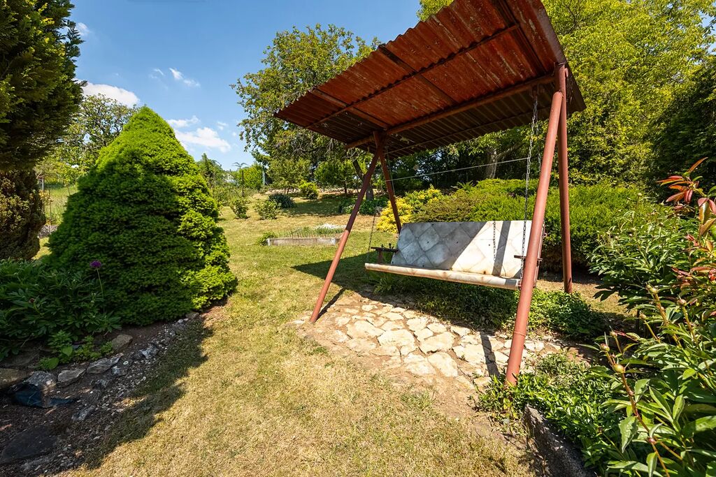 Prostor před domem nabízí příjemné posezení pod velkým ořechem a úžasný výhled.
