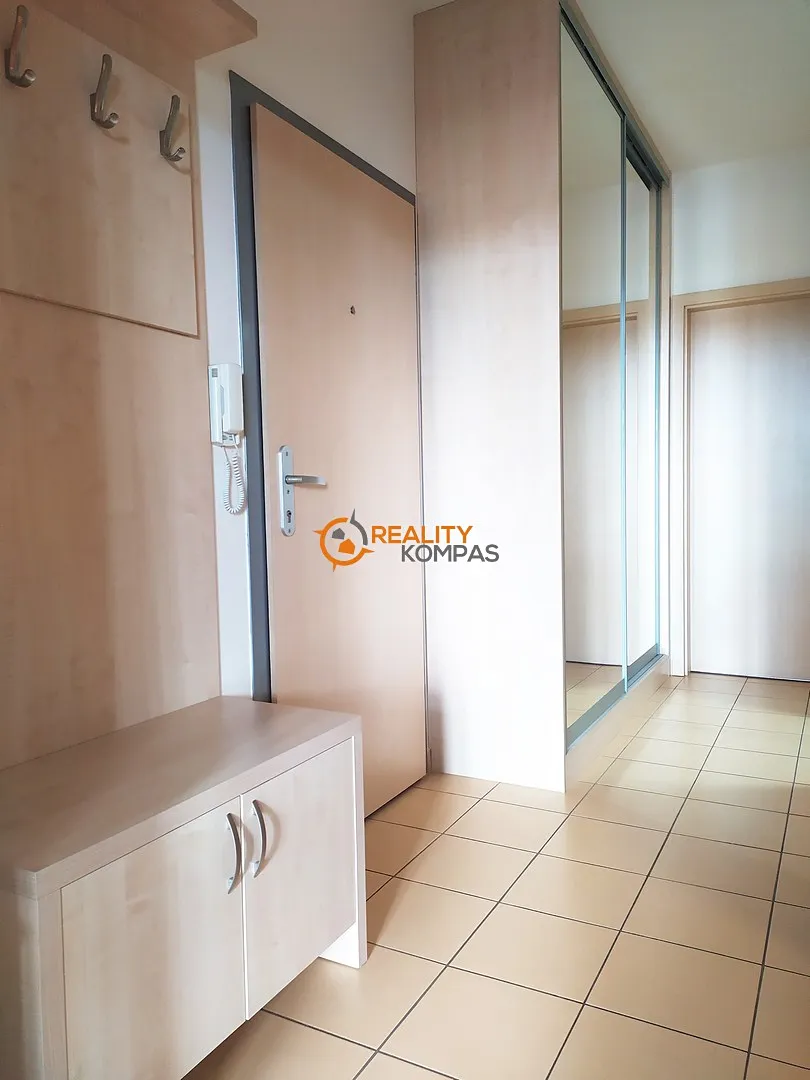 Byt bude pronajímán částečně zařízený - v kuchyňském koutě vestavěná lednice, myčka nádobí, sklokeramická varná deska, elektrická trouba, digestoř, ve vstupní chodbě věšáková stěna s botníkem a vestavěná skříň, v ložnici šatní skříň, v koupelně automatická pračka.