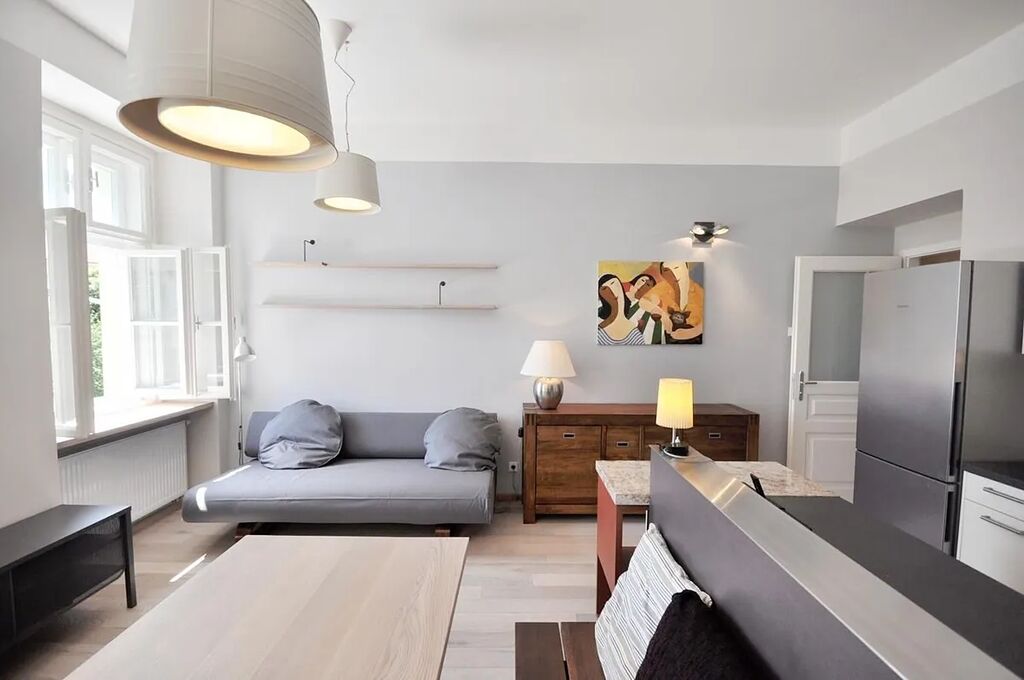 Moderní, zařízený byt 2+kk ( 1 ložnice, 1 koupelna) o rozloze 58 m2 je situovaný ve 2. patře velice dobře udržovaného, zrekonstruovaného domu s výtahem, v ulici Elišky Peškové, Praha 5 Smíchov.