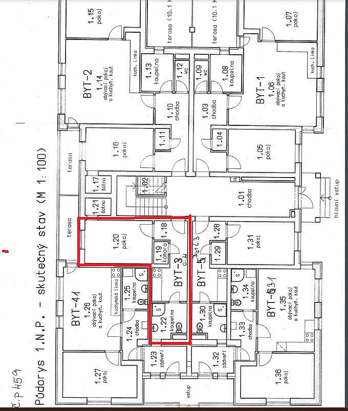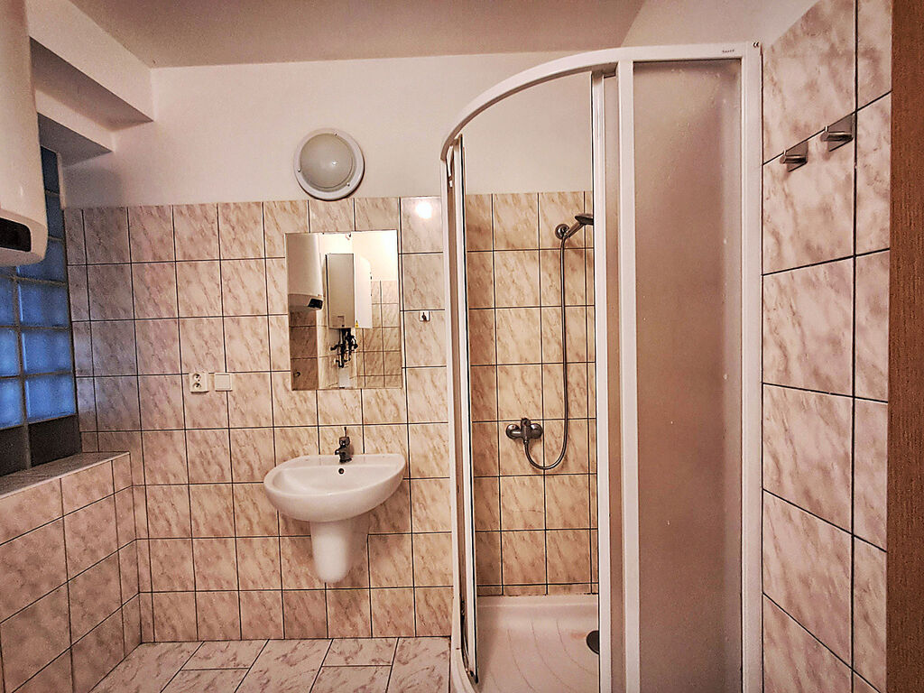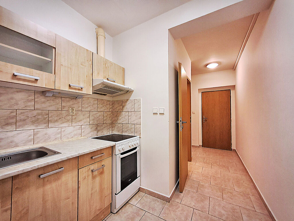 Byt se skládá z prostorného pokoje, samostatné kuchyně s kuchyňskou linkou, elektrickým sporákem a digestoří, dále z předsíně a koupelny se sprchovým koutem a toaletou. Vytápění a ohřev vody zajišťuje elektrokotel a bojler - moderní a úsporný způsob provozu.