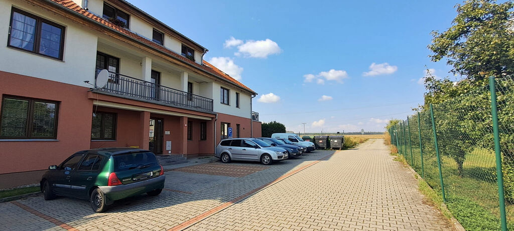 K bytu náleží jedno parkovací stání přímo před domem. Za domem je k dispozici pergola se společným prostorem pro všechny nájemce a nabízí příjemné posezení a prostor k odpočinku.