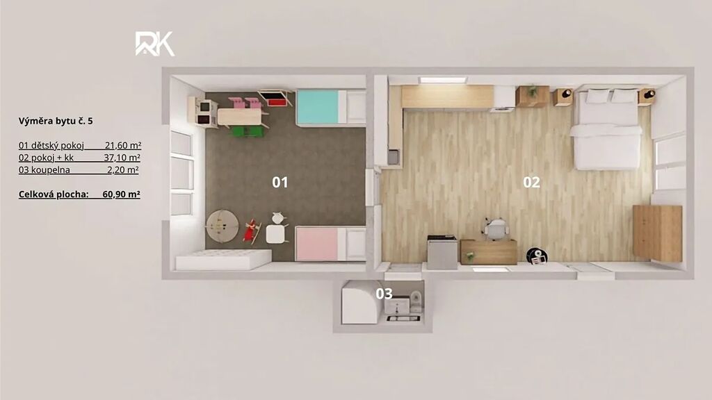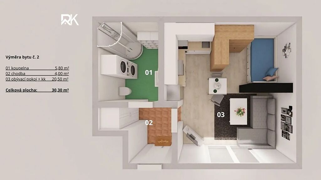 V horním patře se nachází světlý a vzdušný byt 3+kk o velikosti 100 m², jehož dominantou je terasa o 40 m² s krásným výhledem do zeleně. Je to ideální místo pro ranní kávu nebo večerní posezení s přáteli. K bytu náleží také přístup na půdu, která nabízí možnost vybudování další obytné plochy a rozšíření bytu podle vašich představ.