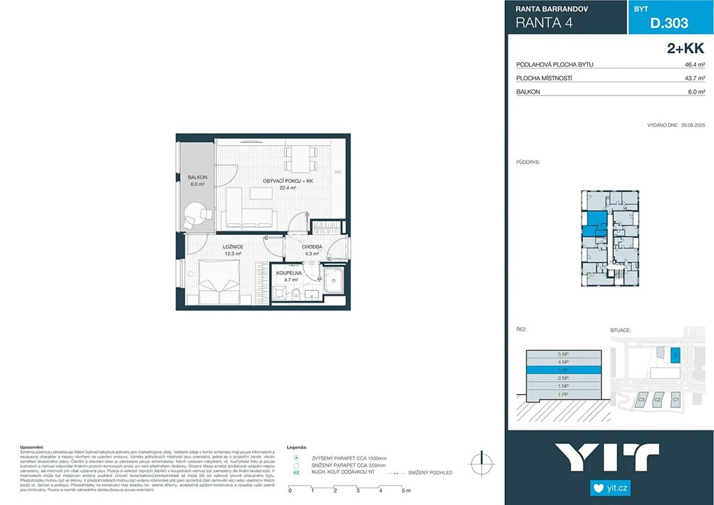 Byt 2+kk o celkové rozloze 43,1 m² je situován v 1.NP projektu RANTA Barrandov IV. Cena zahrnuje bytovou jednotku, sklepní kóji a DPH.