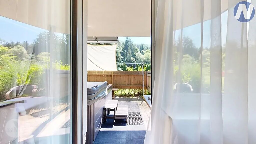 Privátní wellness – stylová sauna přímo v apartmánu a luxusní venkovní jacuzzi na předzahrádce, ideální pro relaxaci pod hvězdami s výhledem do lesů.