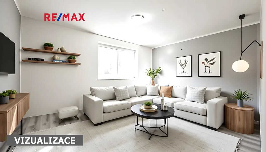 Fotografie interiéru domu jsou doplněny o vizualizace.