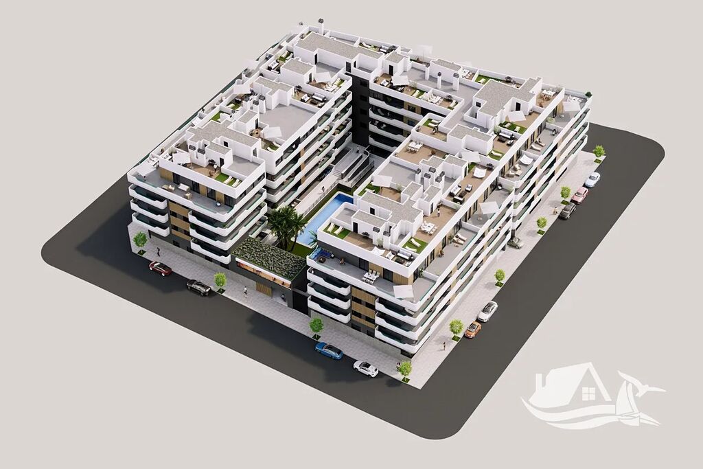 V srdci přímořské Santa Pola vzniká nový rezidenční komplex, který propojuje současný styl, pohodlí a příjemnou atmosféru jižního Španělska. Tento byt o dispozici 3+kk a celkové ploše 84 m² nabízí promyšlené řešení pro klidné bydlení i dlouhodobou investici. Díky dvěma koupelnám a chytře navrženému prostoru působí interiér vzdušně a přirozeně, což vytváří příjemné prostředí pro každodenní život i letní odpočinek. Terasa o velikosti 8 m² poskytuje místo pro ranní kávu nebo večerní posezení, kdy je moře jen jeden kilometr od domovních dveří.