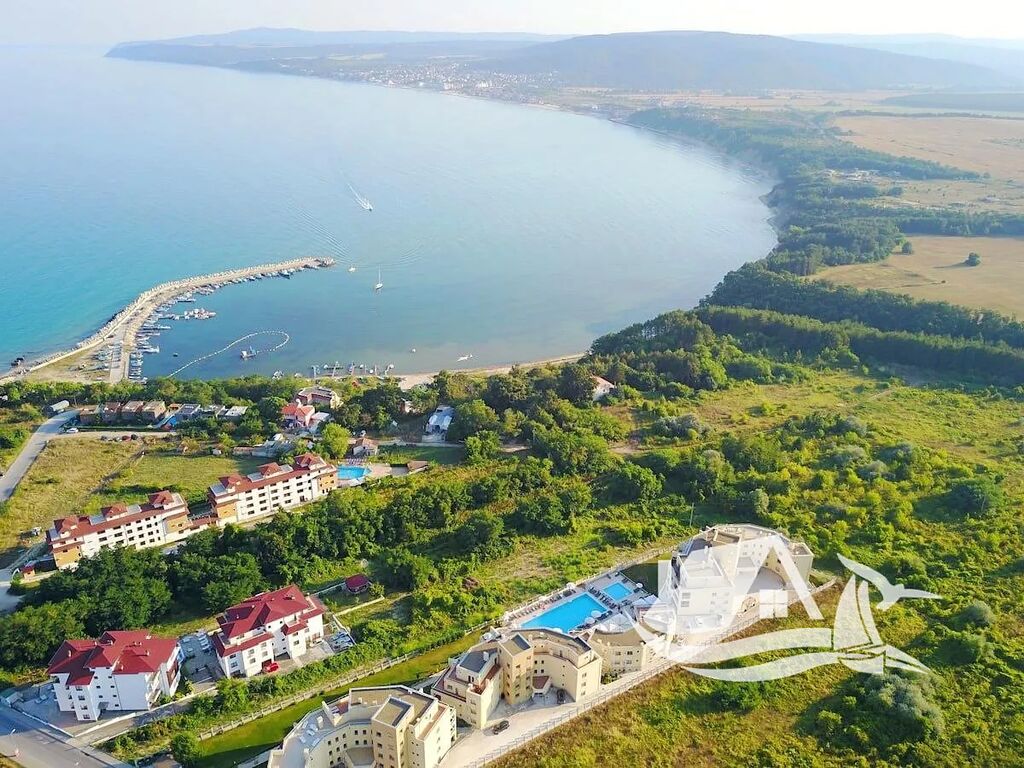 Nabízíme prostorný byt se dvěmi ložnicemi ve třetím patře v uzavřeném komplexu, který se nachází v malebné oblasti "Čaika" v klidného přímořského města Byala, 450 metrů od písečné pláže a přístavu, a restaurace "Čaika" s krásným výhledem na moře a zátok. Byt se skládá z prostorného obývacího pokoje s kuchyní a jídelním koutem ve společném prostoru, hlavní ložnice s vlastní koupelnou s toaletou, druhá ložnice, druhá koupelna s toaletou a prostorné terasy s výhledem na moře a upravené území komplexu. K bytu náleží sklep. Má velkou plochu, vhodný na pohodlné dovolené i pro velkou rodinu. Užitná plocha (včetně sklepa o ploše 6 m2) je 101 m2, celková plocha je 120 m2. Byt je dobře zařízený a vybavený a cena je včetně nábytku a vybavení dle fotografií. Oplocený areál komplexu má následující vybavení: 2 bazény, rekreační oblast s lehátky a slunečníky, restaurace, parkoviště, minimarket, posilovna, masážní místnost, dětské hřiště a spousta zeleně. Roční poplatek za údržbu je 15.50 €/m2.