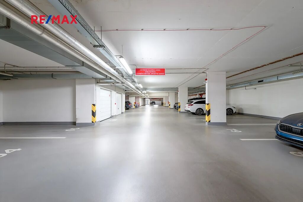 Byt se skládá z prostorného obývacího pokoje s kuchyňským koutem, ložnice, koupelny a předsíně. K bytu náleží balkon o velikosti 4,4 m² a sklepní kóje 2,4 m². V ceně je zahrnuto parkovací místo v podzemní garáži, což představuje výraznou přidanou hodnotu v této lokalitě.
