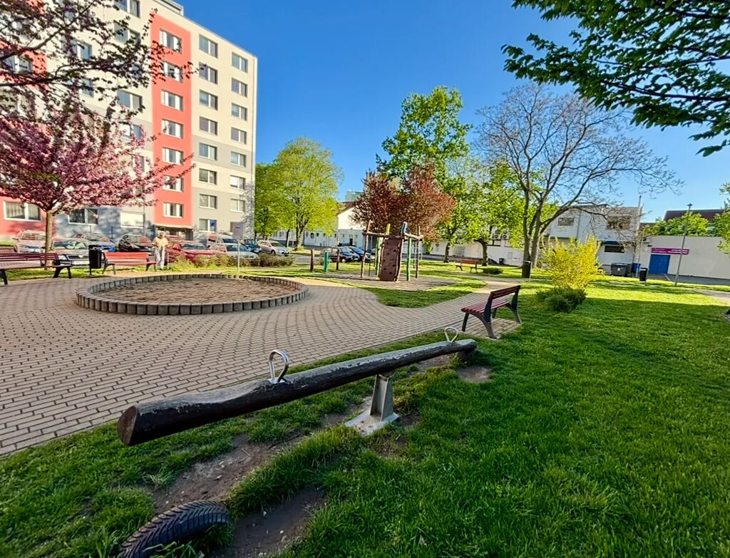 • Klidné prostředí s parkem a dětským hřištěm přímo u domu