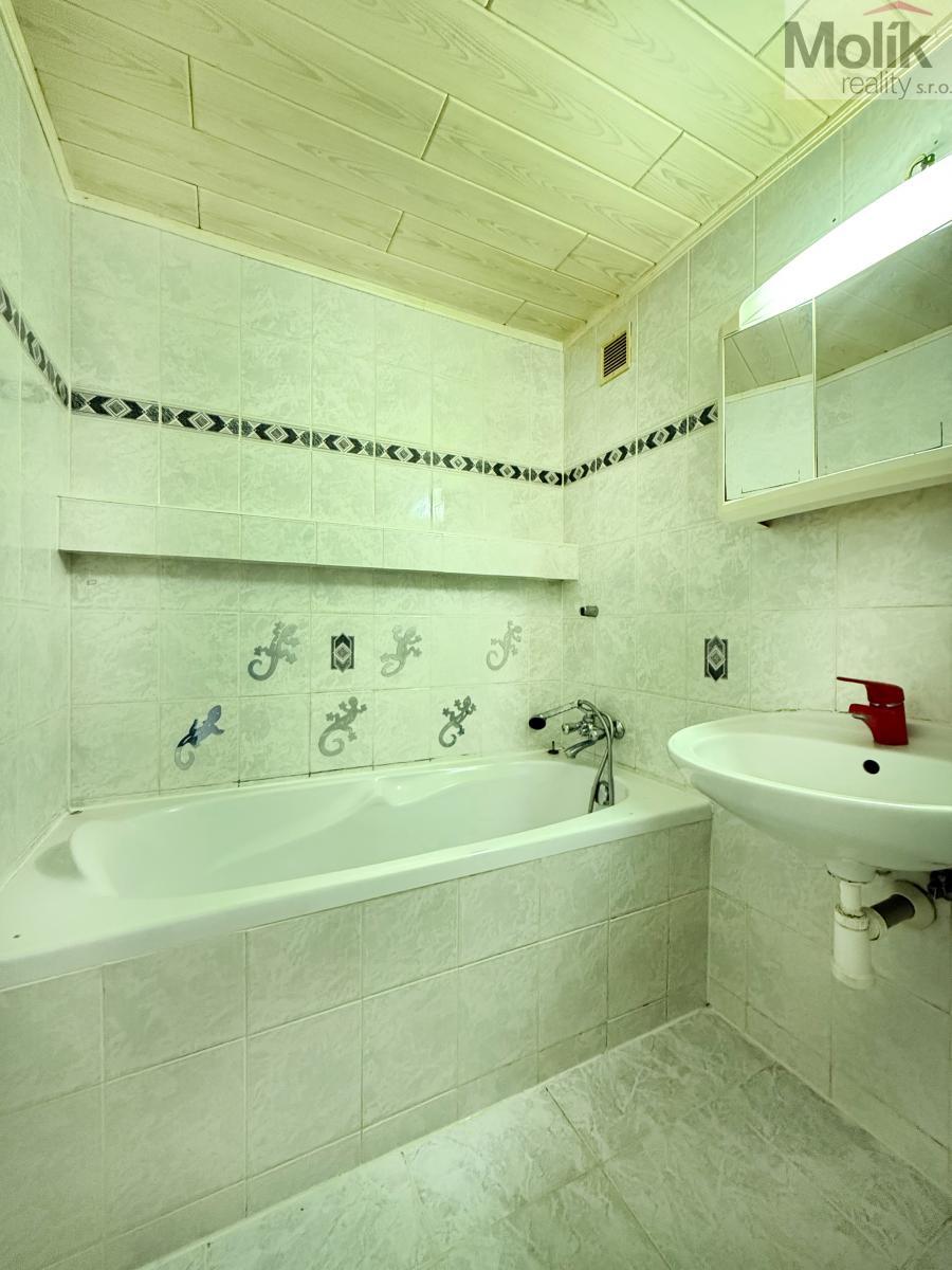 Byt je v původním udržovaném stavu - kuchyňská linka se sporákem, umakartové jádro koupelny obložené keramickými obklady s vanou, podlahová krytina - linoleum.