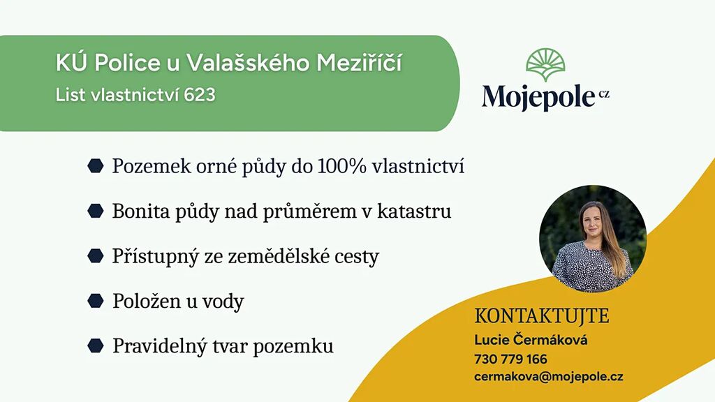V zastoupení vlastníka nabízím k prodeji zemědělský pozemek ve výlučném vlastnictví, nacházející se v katastrálním území Police u Valašského Meziříčí, obec Police, okres Vsetín.