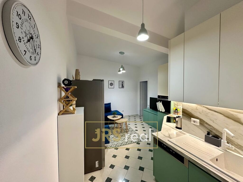 Ve výhradním zastoupení majitele nabízíme k prodeji plně vybavený byt 2+1 v Durrës v Albánii. Byt o vnitřní ploše 81 m² s krásným výhledem na moře se nachází ve 4. patře budovy bez výtahu. Po vstupu do bytu Vás přivítá chodba s pračkou a botníky, z níž je přístup do jedné z ložnic, koupelny a na prostornou terasu. Naproti vchodovým dveřím se nachází hlavní obytná část tvořená obývacím pokojem propojeným s kuchyní. Kuchyňská linka je vybavena vestavěnou myčkou, sklokeramickou varnou deskou a vestavěnou troubou. Obývací pokoj disponuje prostornou pohovkou, konferenčními stolky a televizí. V zadní části této místnosti se nachází vstup do první ložnice, která je vybavena dvoulůžkovou postelí, nočními stolky, úložnou skříňkou a klimatizací. Druhá ložnice, přístupná z chodby, nabízí stejné vybavení. Koupelna je zařízena sprchovým koutem, toaletou a umyvadlem. Velkou předností bytu je terasa, na které se nachází venkovní sprcha, venkovní kuchyňská linka, posezení a gril, což z ní činí ideální místo pro relaxaci i společenské chvíle. Tento byt je vhodný pro rodinné bydlení nebo jako investiční příležitost. V případě zájmu o tuto nemovitost kontaktujte makléře.