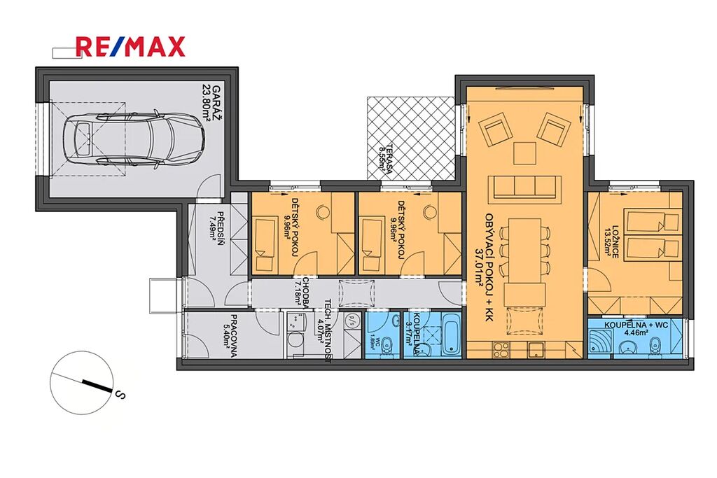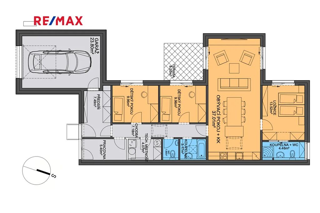 Prémiový rodinný bungalov 4+kk, garáž, dvě koupleny, dvě toalety, technická místnost.