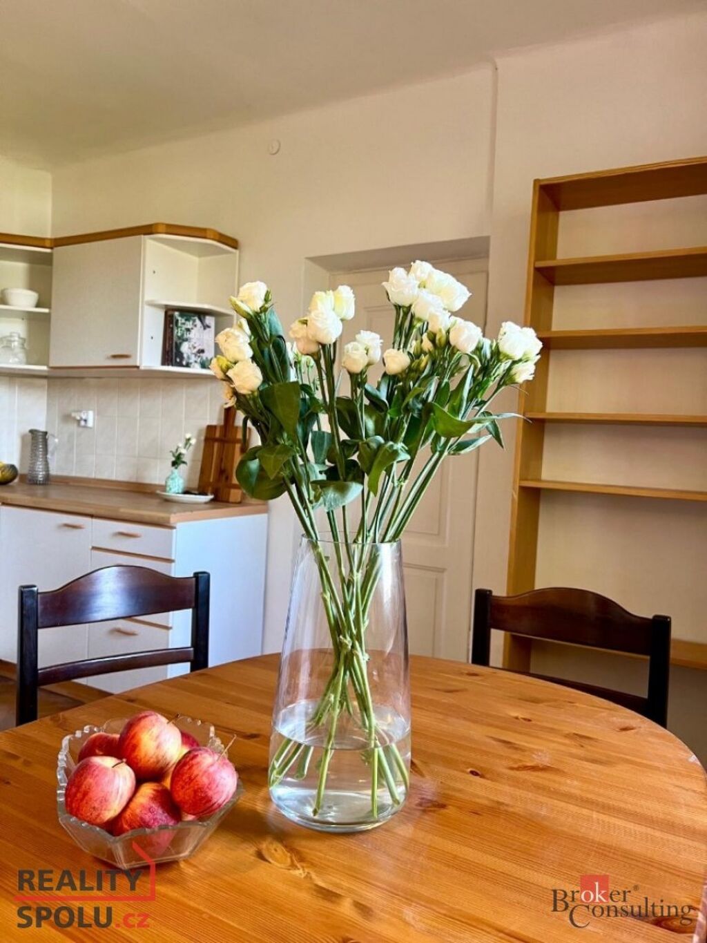 Byt se skládá ze dvou velkých slunných pokojů, prostorné kuchyně vybavené kuchyňskou linkou, lednicí s mrazákem, sporákem, elektrickou troubou a jídelním stolem.