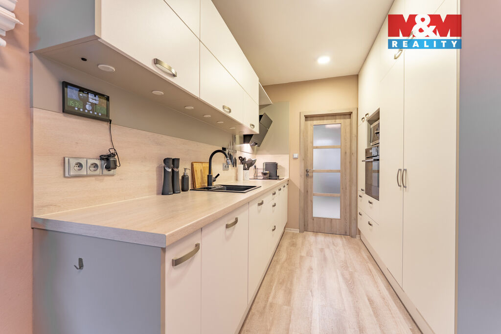Interiér prošel rozsáhlou modernizací – nové rozvody, podlahy, omítky, dveře, koupelna i toaleta. Velkým benefitem je kuchyňská linka na míru, stejně jako úložné prostory vyrobené truhlářem, které maximálně využívají každý centimetr bytu a zajišťují dostatek místa pro pohodlné bydlení. Celkový dojem doplňuje kvalitní vybavení a čistý, moderní design.