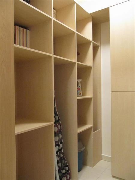 V bytě se nachází prostorná šatna se spoustou úložného prostoru a botníkem.