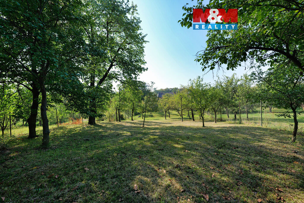 Na pozemku rostou vzrostlé ovocné stromy a je částečně oplocený, což dodává soukromí a estetický vzhled.