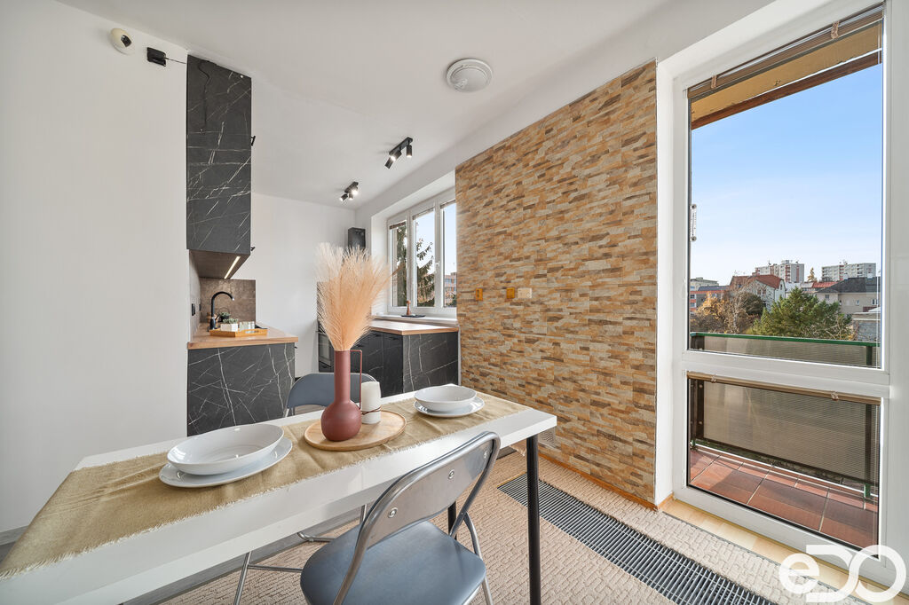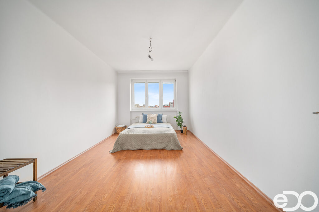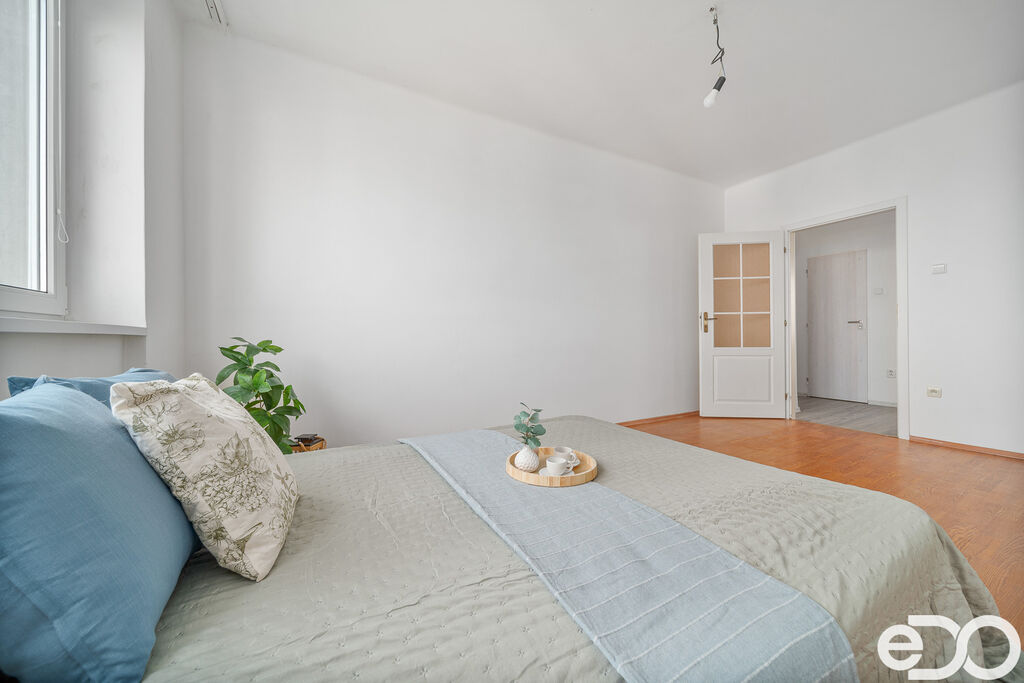 Byt o užitné ploše 71,45 m² nabízí praktické uspořádání s oddělenou kuchyní, prostorným obývacím pokojem a dvěma ložnicemi. Čeká Vás také nový kuchyňský kout s moderní linkou, myčkou, plynovým sporákem, troubou i digestoří – prostě všechno, co potřebujete ke klidnému bydlení. O pohodlí se postará i balkon orientovaný do zeleného vnitrobloku, kde si můžete vychutnat ranní kávu nebo letní večeře. K bytu navíc náleží sklep (5,6 m²), což zajišťuje dostatek místa pro všechno, co zrovna nepotřebujete mít po ruce, od zavařovaček po čerstvě přezuté letní pneumatiky.