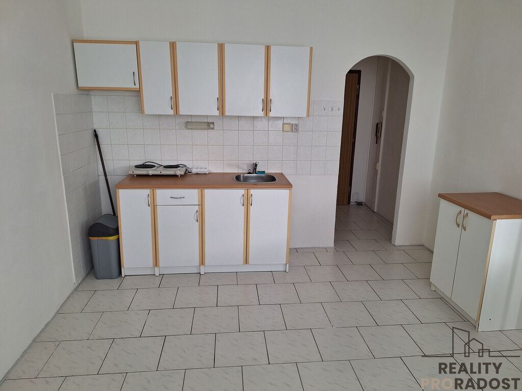 V bytě je kuchyňská linka s dvouplotýnkovým vařičem, plastová okna, dlažba a v druhé místnosti plovoucí podlaha.