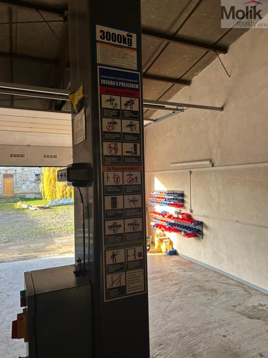 První garáž je o výměře 11,5 x 6m. Plně funkční prostor využívaný jako dílna. Součástí je veškeré stávající vybavení, které je k dispozici novému nájemci.