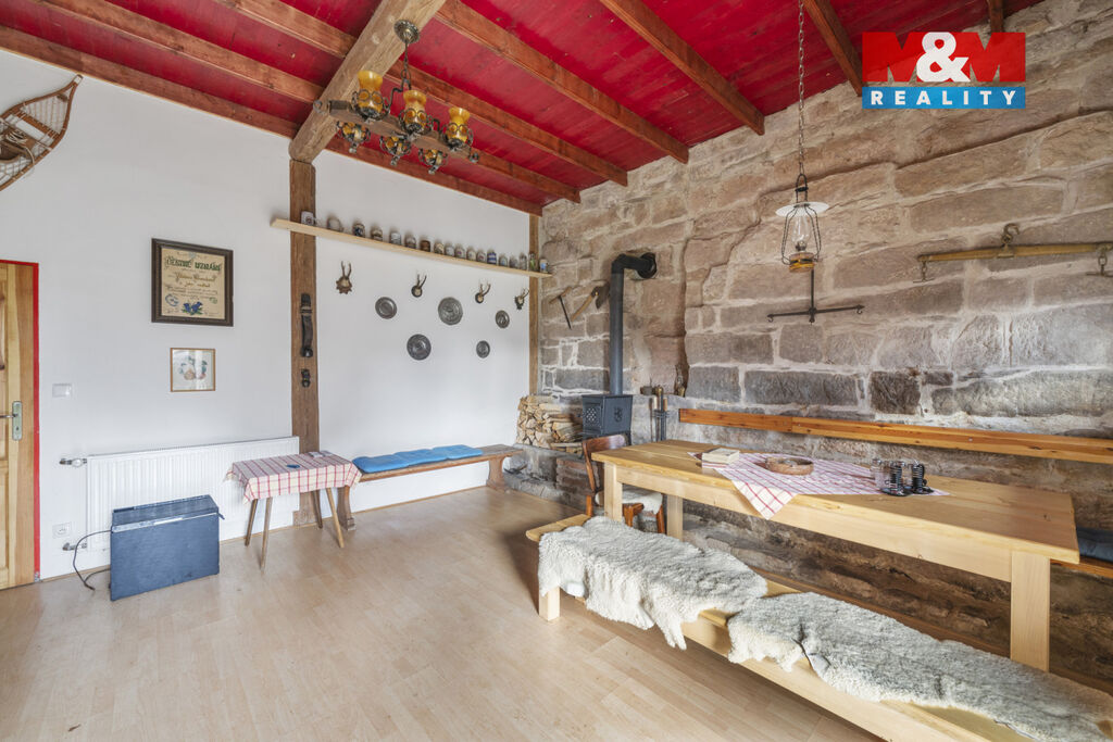 Nabízíme k prodeji výjimečnou chalupu v malebné části obce Vernéřovice, umístěnou na polosamotě, která zajišťuje maximální soukromí a klid. Tato samostatně stojící nemovitost o užitné ploše 280 m² je ideální nejen pro rodinnou rekreaci, ale i podnikání v oblasti ubytování. Chalupa je ve velmi dobrém stavu a nabízí 6 prostorných místností rozložených na 2 nadzemních a 1 podzemním podlaží. Vnitřní komfort zajišťuje podlahové topení napojené na moderní tepelné čerpadlo, útulnou atmosféru dotvářejí dvoje krbová kamna. Na pozemku o rozloze 1499 m² se nachází vlastní studna. Smíšená konstrukce budovy harmonicky zapadá do okolní krajiny. Pokud hledáte místo s jedinečnou atmosférou a potenciálem, je tato nabídka pro vás ideální.